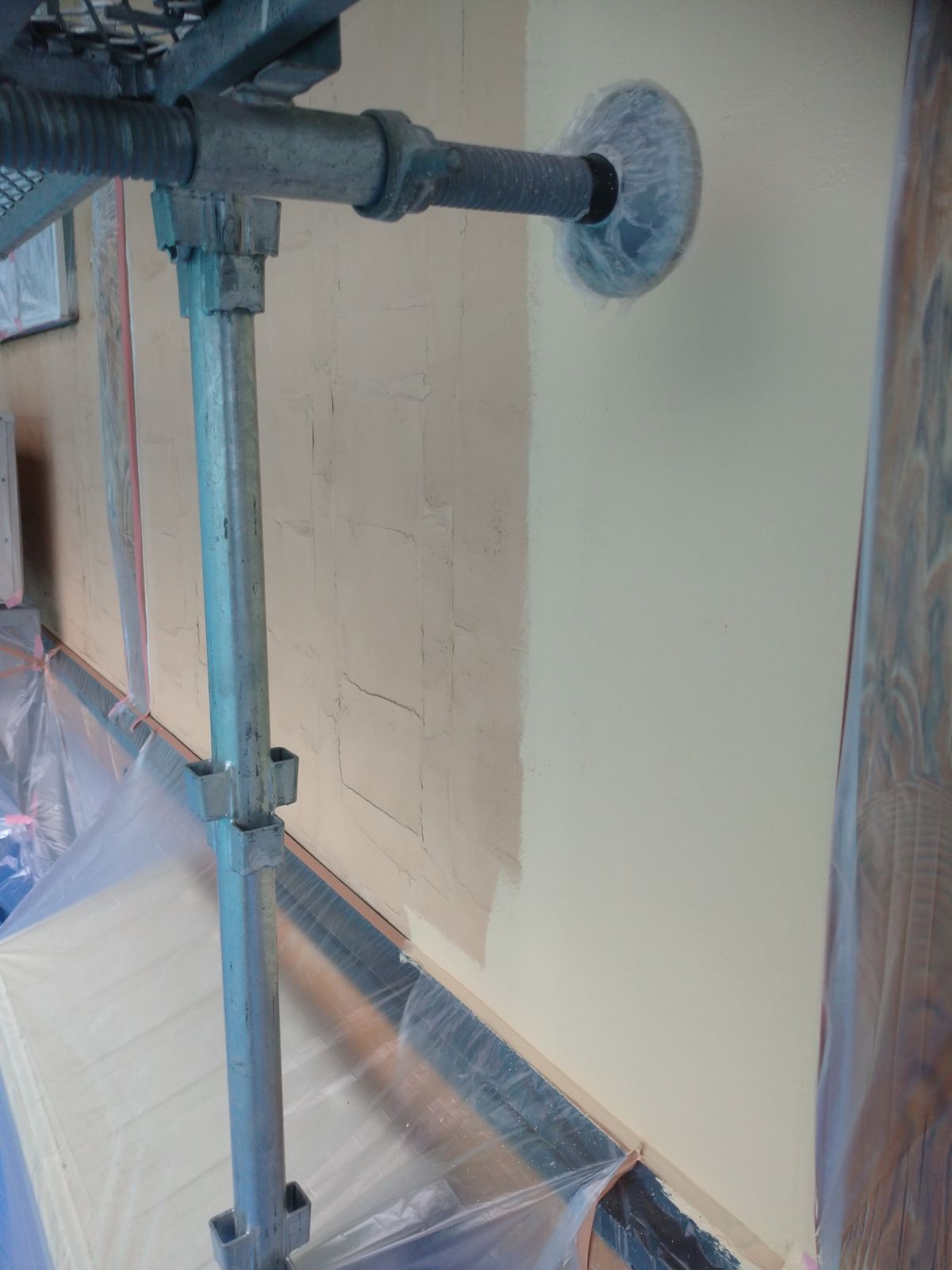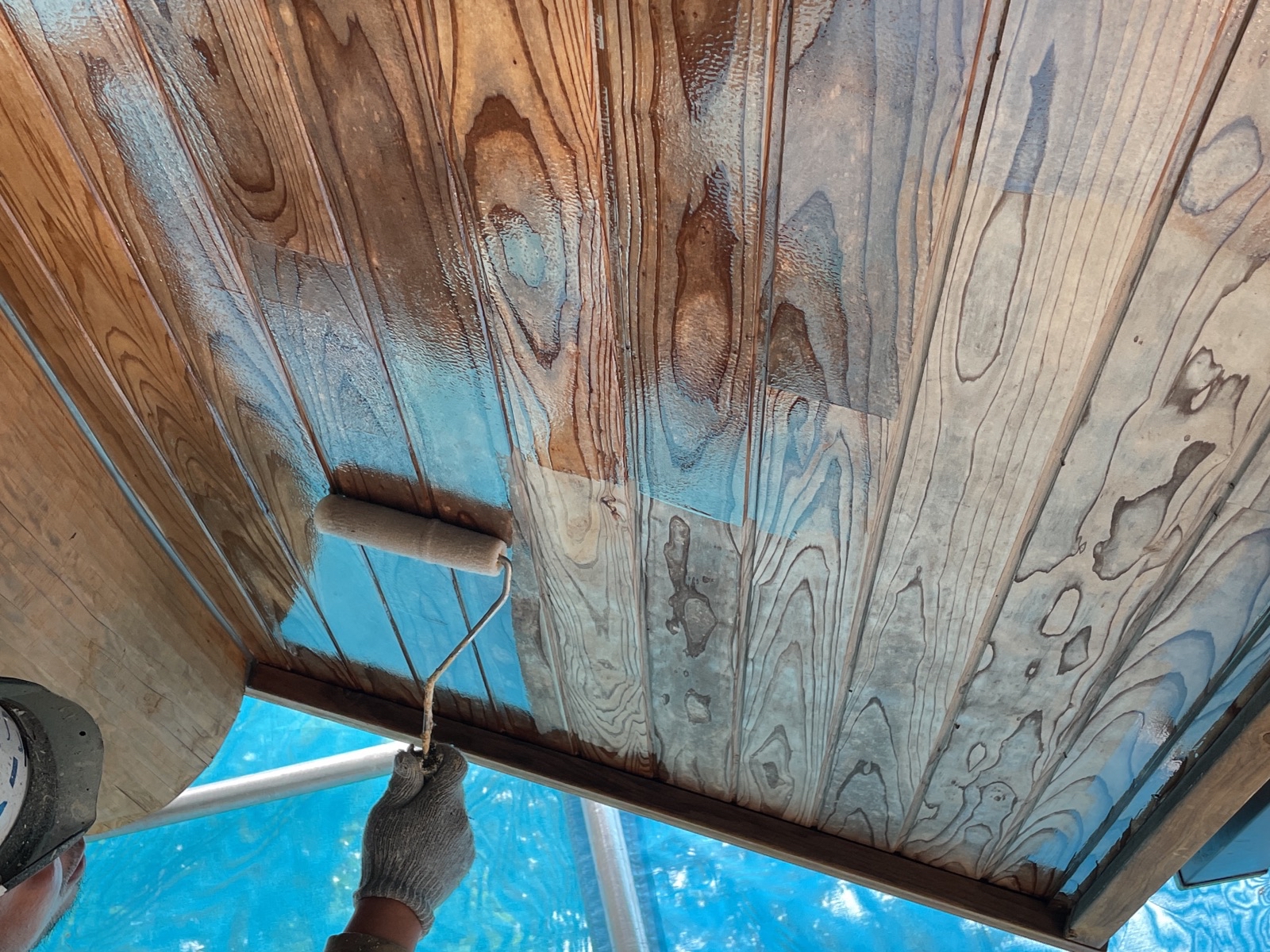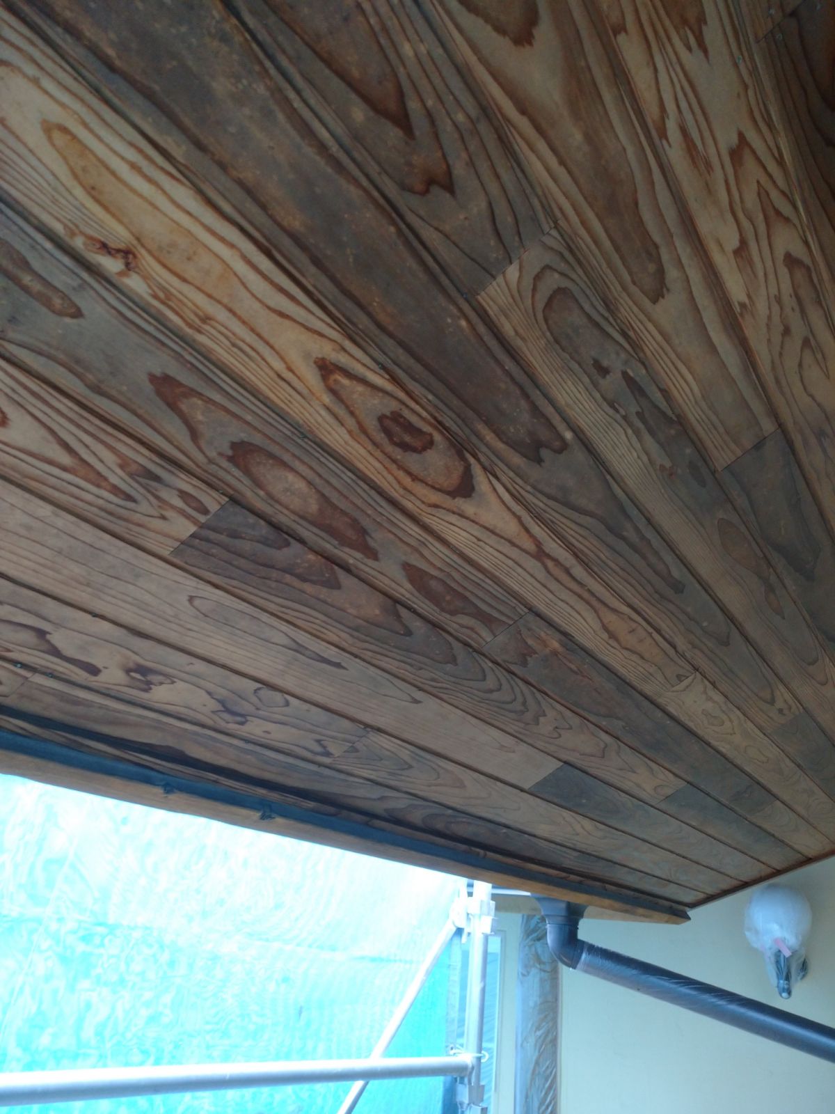 コウモリの侵入があるとのことで木部の隙間をコーキングで埋める作業を行いました。外壁はジョリパットの上質な質感を残したまま施工できるジョリパットフレッシュを使用。カラーは既存の色に近い色をお選びいただきました。木部も経年劣化による色褪せ等多く見られましたので木部保護塗料を塗布しました。