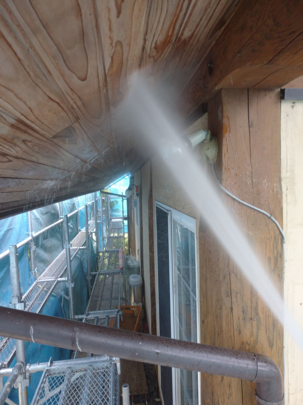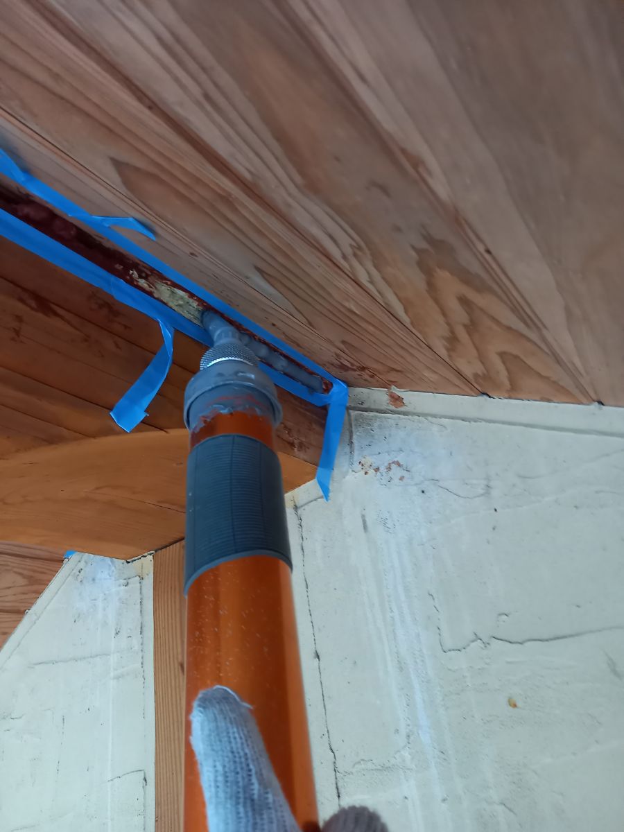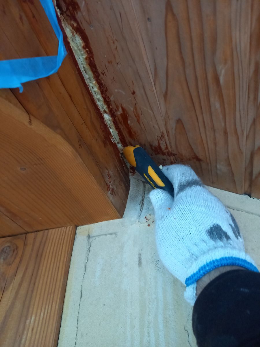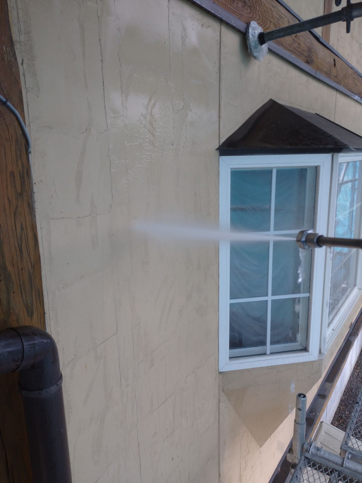 コウモリの侵入があるとのことで木部の隙間をコーキングで埋める作業を行いました。外壁はジョリパットの上質な質感を残したまま施工できるジョリパットフレッシュを使用。カラーは既存の色に近い色をお選びいただきました。木部も経年劣化による色褪せ等多く見られましたので木部保護塗料を塗布しました。