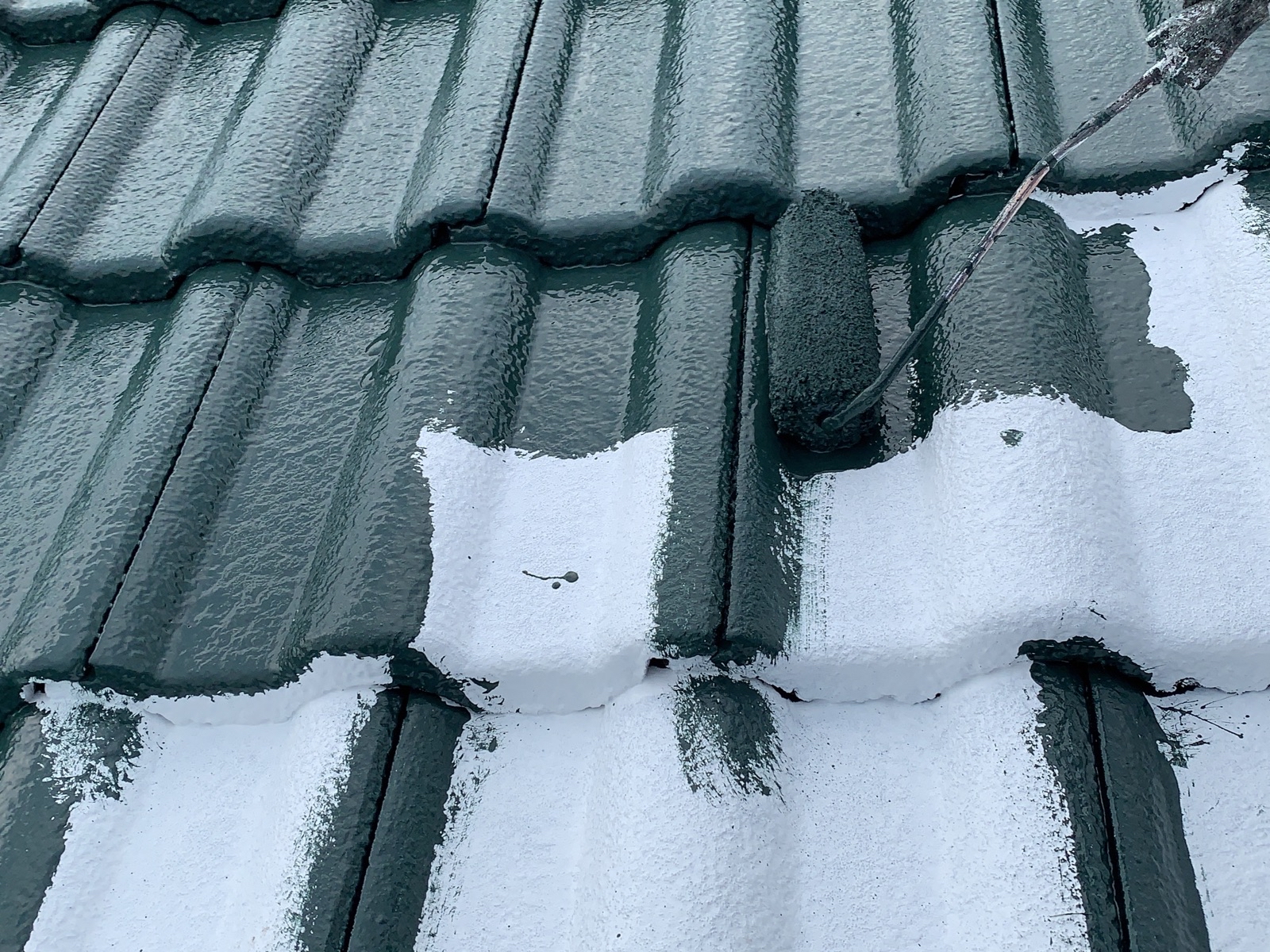 屋根はモニエル瓦、外壁は窯業系サイディングです。屋根は入念に高圧洗浄をした後、経年劣化による塗料の吸い込みが激しかったため、下塗り材を2階塗布後、上塗り材を2回塗布しました。外壁はコーキングを撤去後、クリヤー塗料を2回塗布。その後コーキング材を充填しました。
