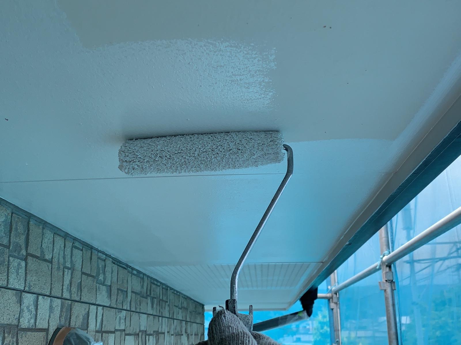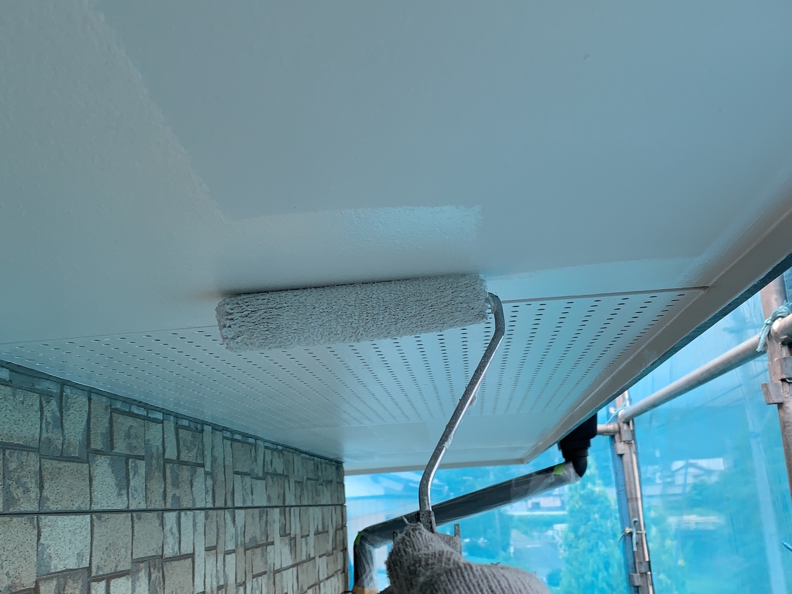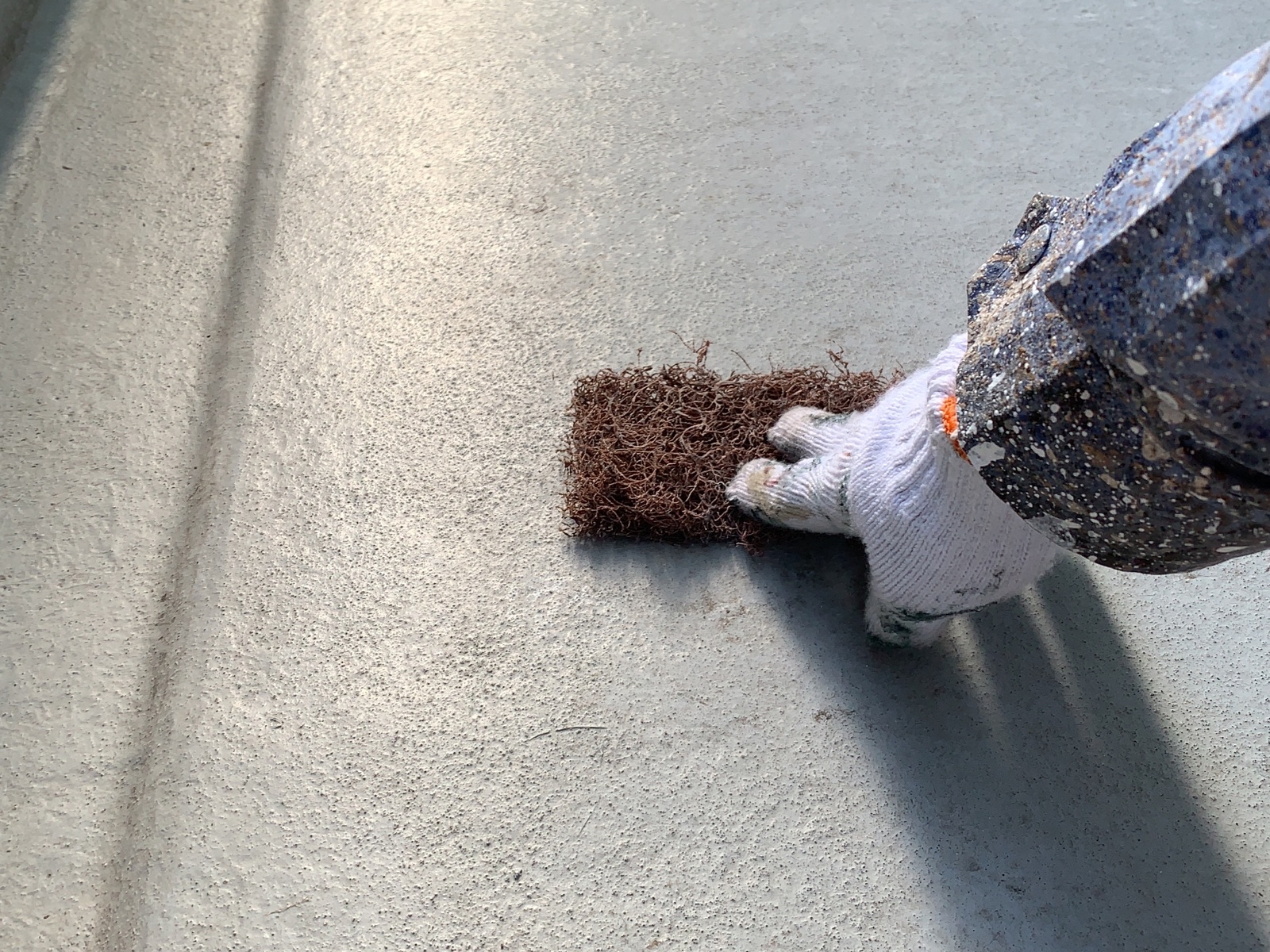塗料はKFケミカルのセミフロンシリーズを使用。この塗料は紫外線や雨、風、塩害にも強いのが大きな特徴。無機の特性でもある優れたな耐候性によりより美しく外壁を保護します。