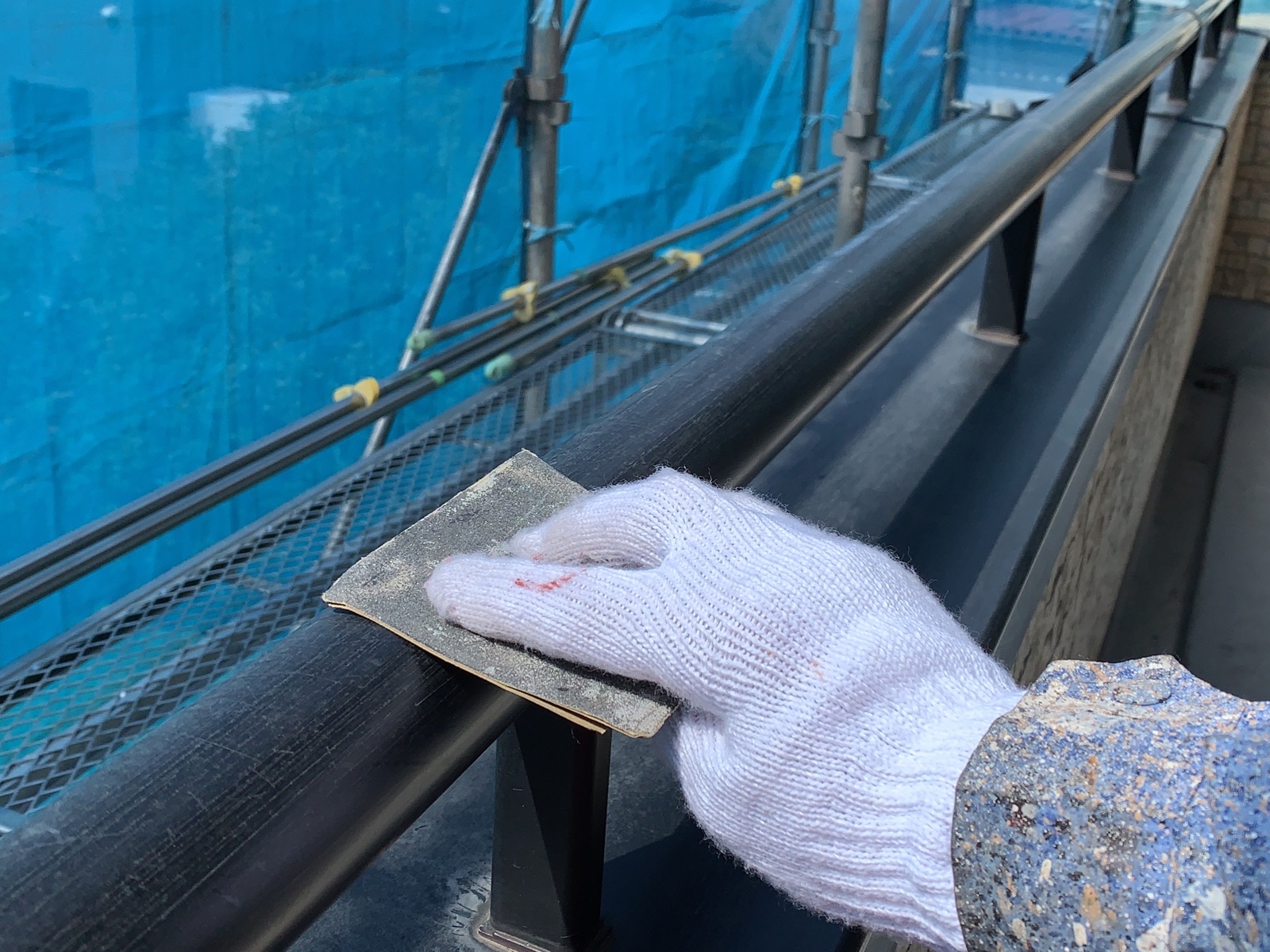 クリヤー塗装の場合、コーキング後にクリヤー塗料を塗布するとコーキング部の塗膜が早期に割れてしまう事が多いため、当社ではコーキングは塗装をした後、充填します。(後打ちします)
