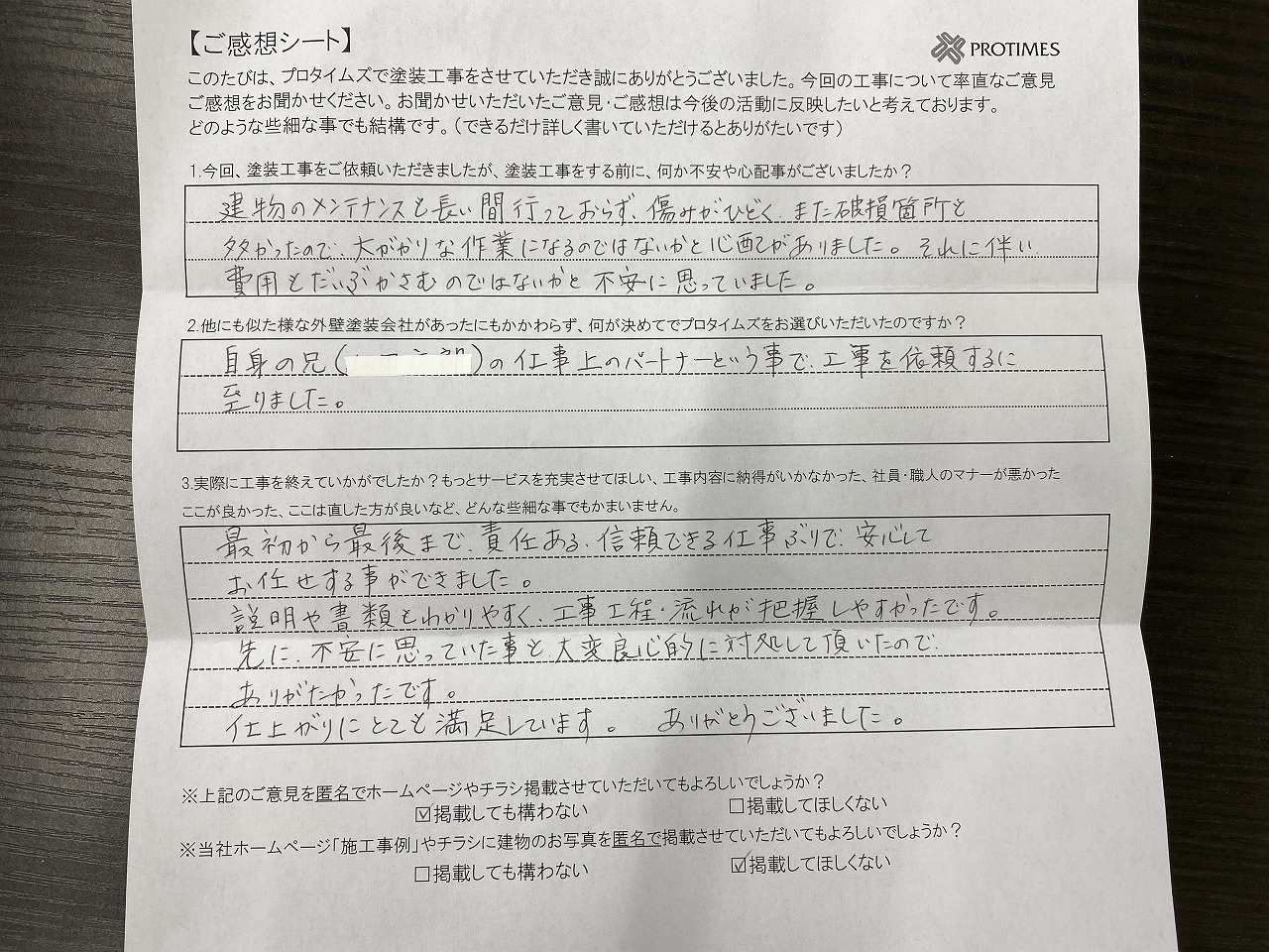 他にも似たような業者があったにもかかわらず、何が決め手でプロタイムズをお選びいただいたのですか?
