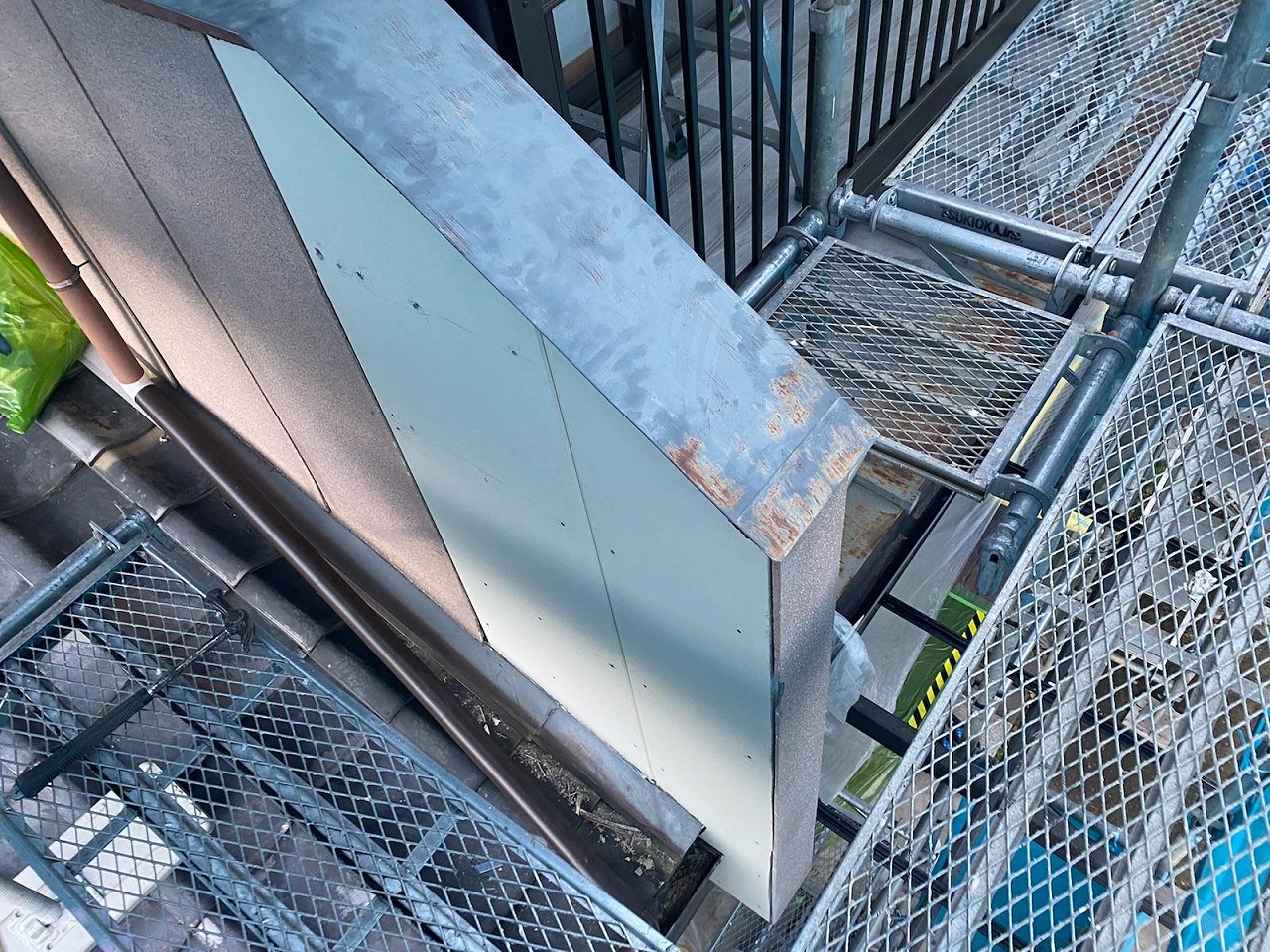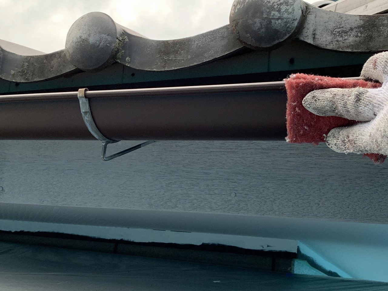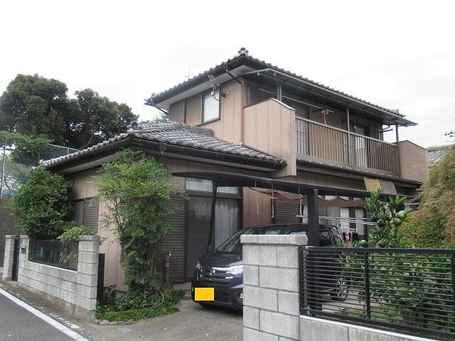 袖壁一部補修し、サイディングのひび割れ部も補修後、下地調整材(フィラー)を塗布後、上塗り材を2回塗布しました。トタン屋根の錆は研磨し、錆止めを塗布後上塗り材を2回塗布。塗料はアステックペイントの製品で弊社で一番人気の塗料を使用。超低汚染プラチナリファイン2000MF。紫外線により発生いする劣化因子を制御し耐久性に優れ、親水性能により長きにわたって美観を保ちます。しかも遮熱機能を兼ね備えています。色はアイアンバーグを使用しました。日本家屋にピッタリの落ち着きのある外観に仕上がりました。