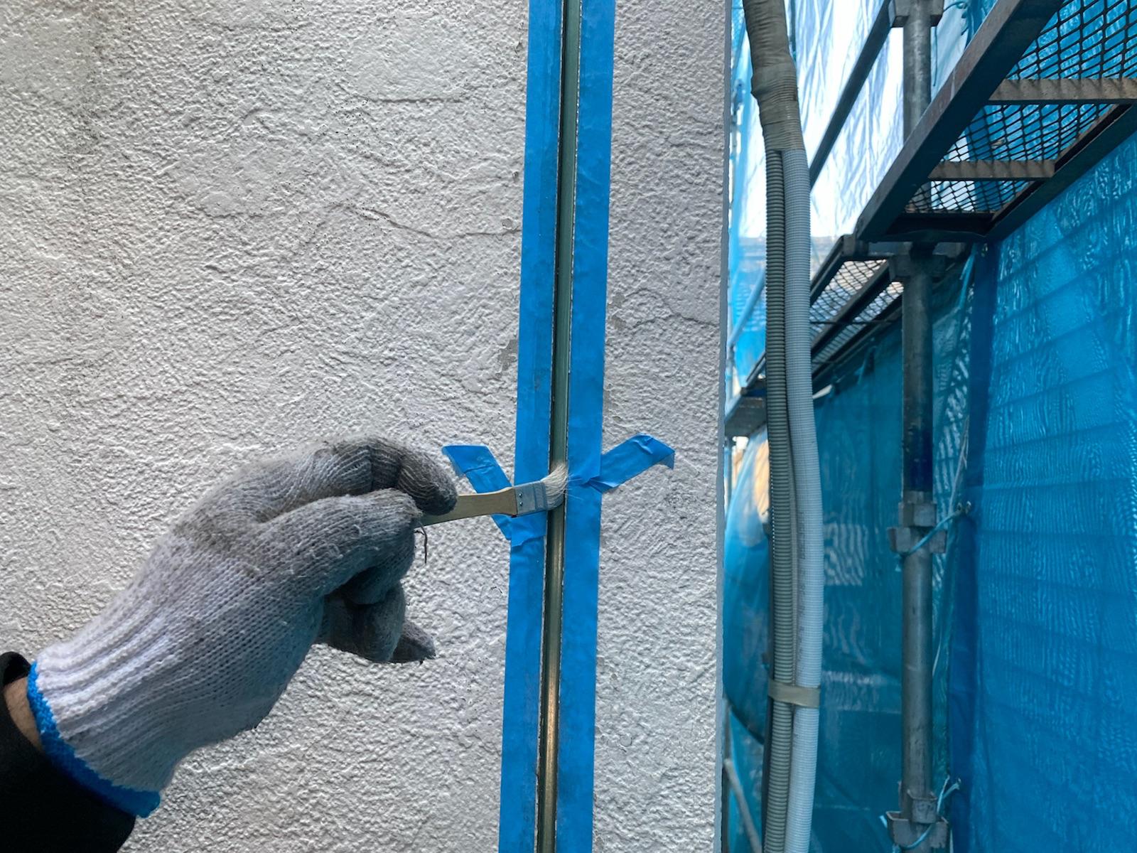 一部の外壁は反りなどが見られたため張り替えてから塗装を行いました。既存の外壁が2トーンでしたので今回も同じく2色使い。窯業系サイディングは蓄熱性がある為、遮熱塗料を選択されました。