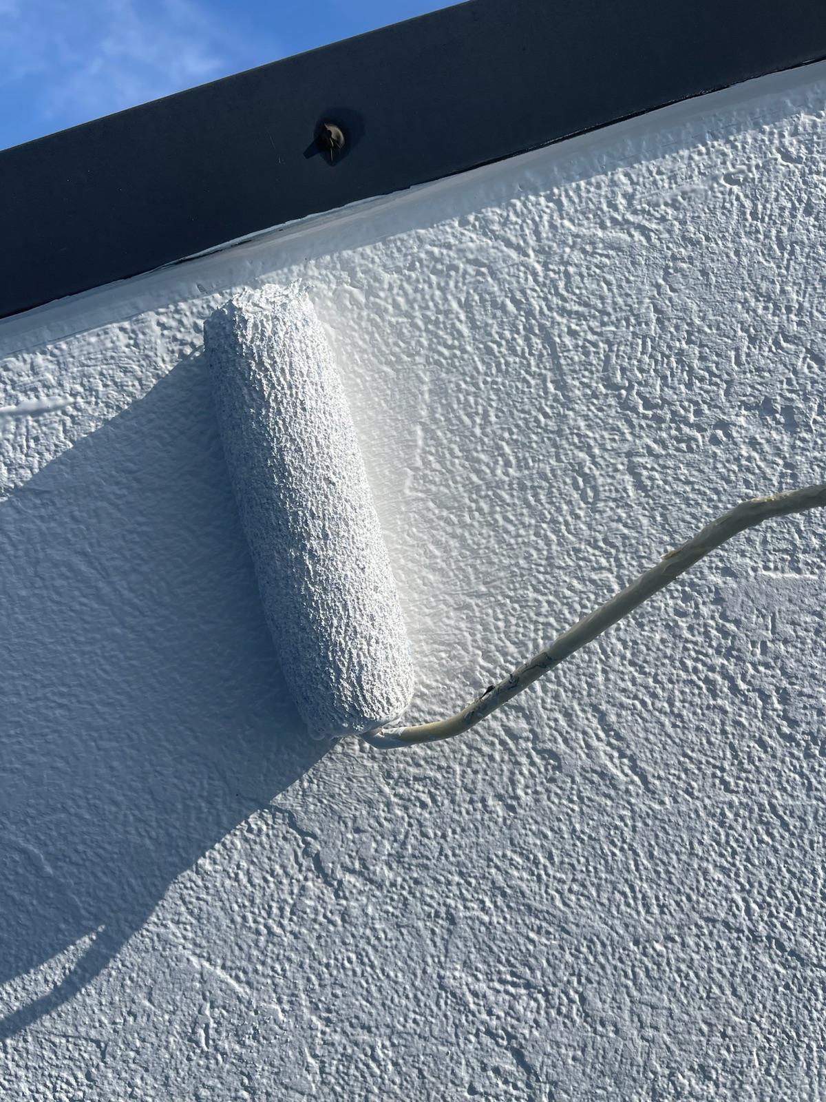 使用したのはアステックペイントのプラチナシリコンREVO。色はクールホワイトとマウンテンブルーです。とっても爽やかで、建物にピッタリ!まるで新築時のような外観に仕上がりました。