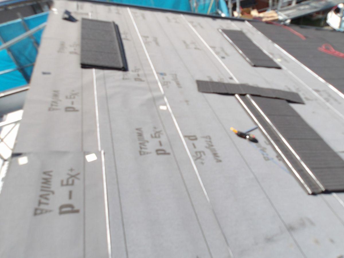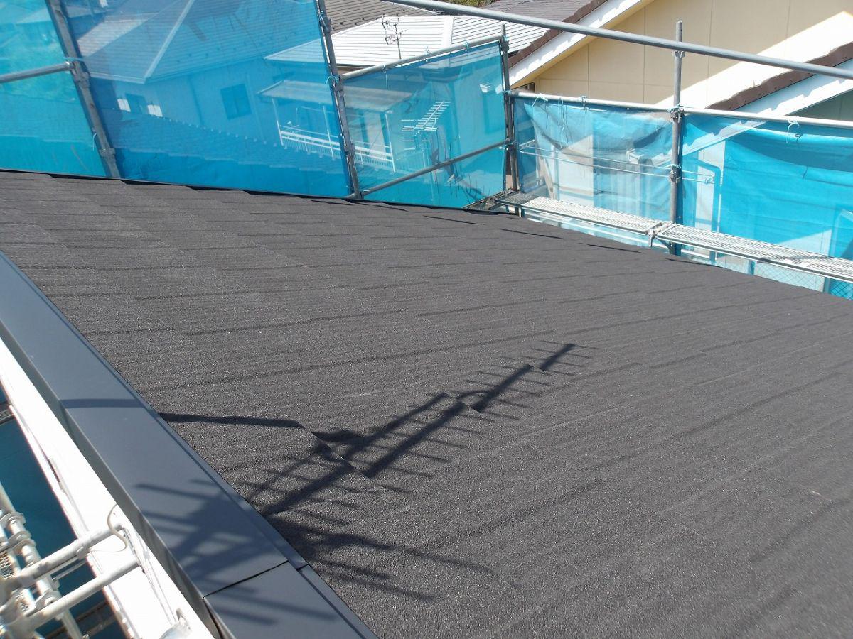 屋根は塗装できない屋根材ではなかったのですが、長い目で見てカバー工法による改修工事を行いました。使用したのはディートレーディングのエコグラーニ。