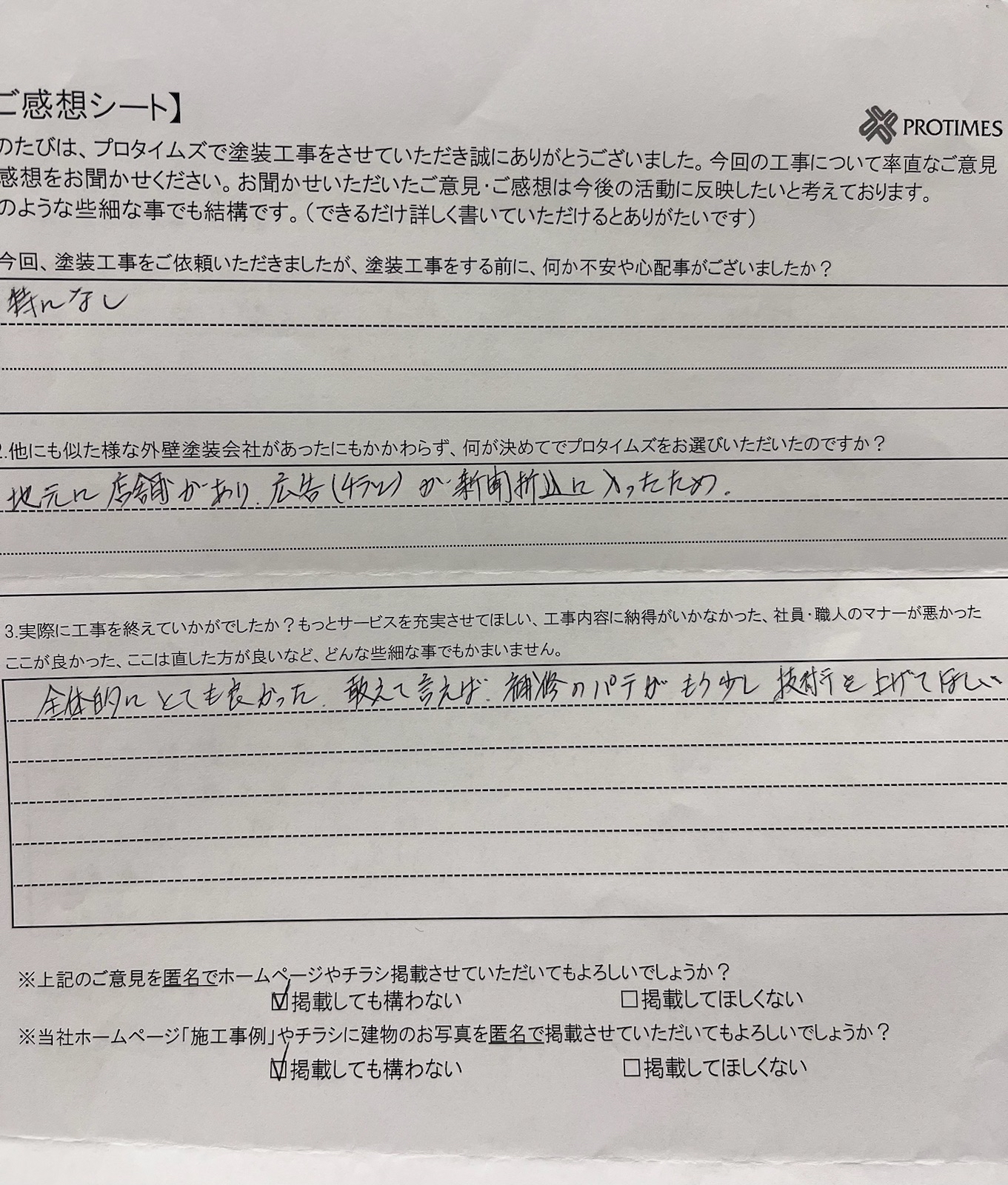 他にも似たような業者があったにもかかわらず、何が決め手でプロタイムズをお選びいただいたのですか?