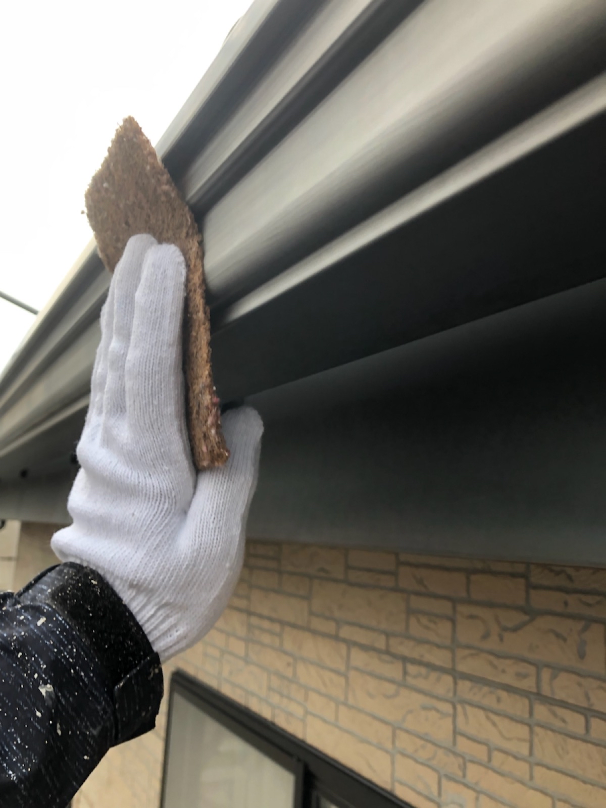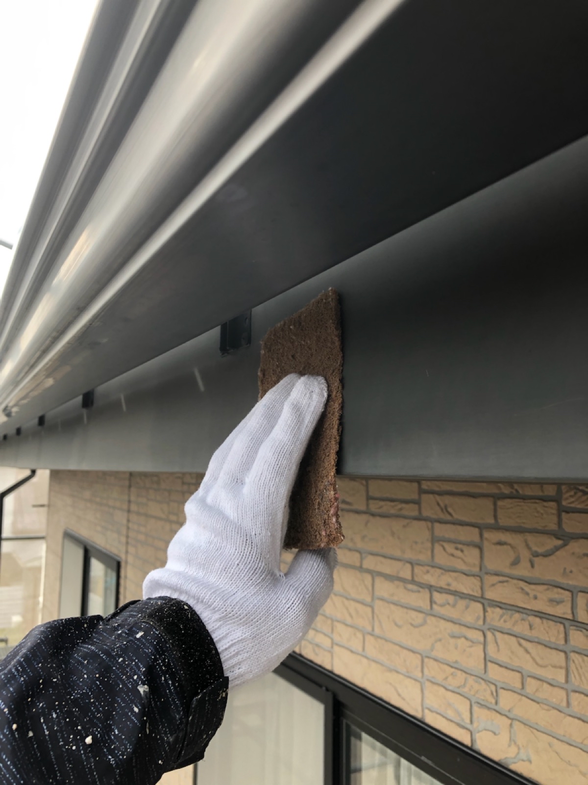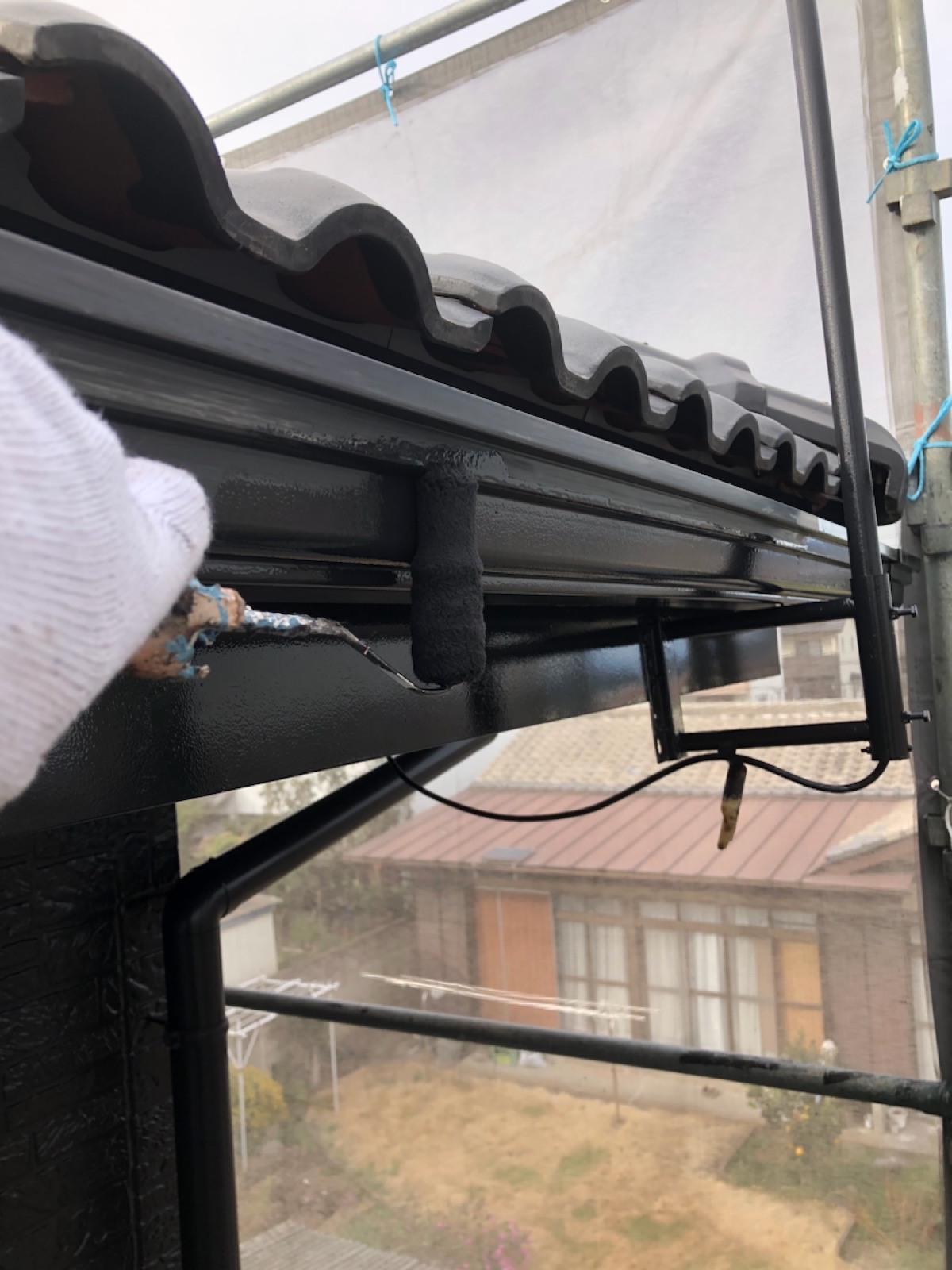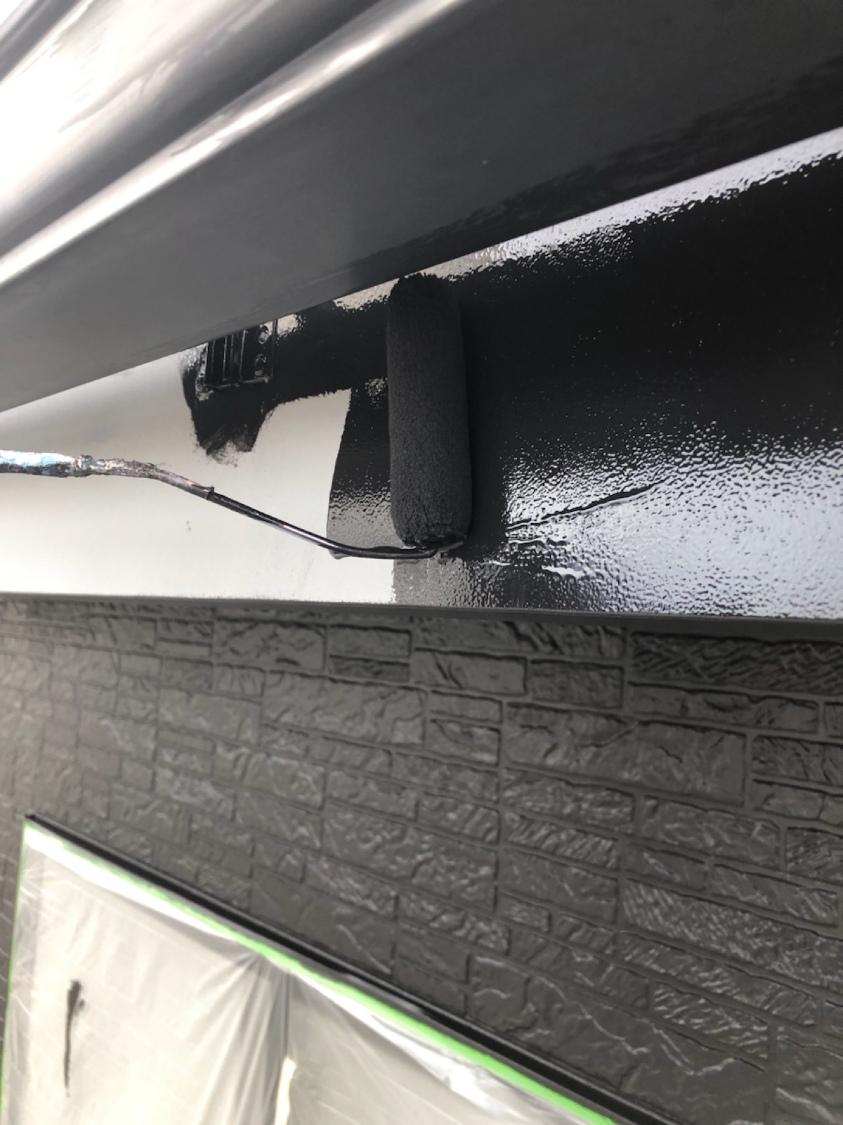 是正したのち下塗り中塗り上塗りと塗り重ねて雨がほぼ降らなかったので工事も順調に進みました。材料はアステックペイントの人気の塗料‘‘超低汚染プラチナリファインを使用、カラーも人気のチャコールで塗装しました。また雨樋、破風板、水切りなどの付帯部、ベランダ床もトップコートを2回塗布しました。