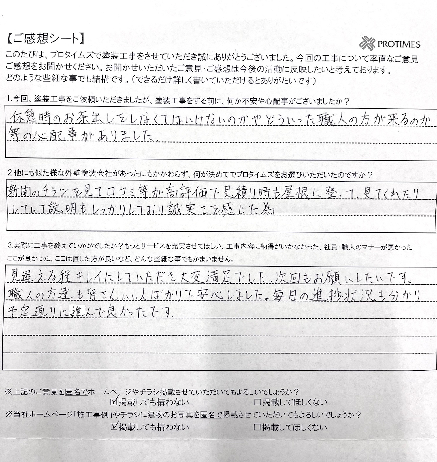 他にも似たような外壁塗装会社があったにもかかわらず、何が決め手でプロタイムズをお選びいただいたのですか?