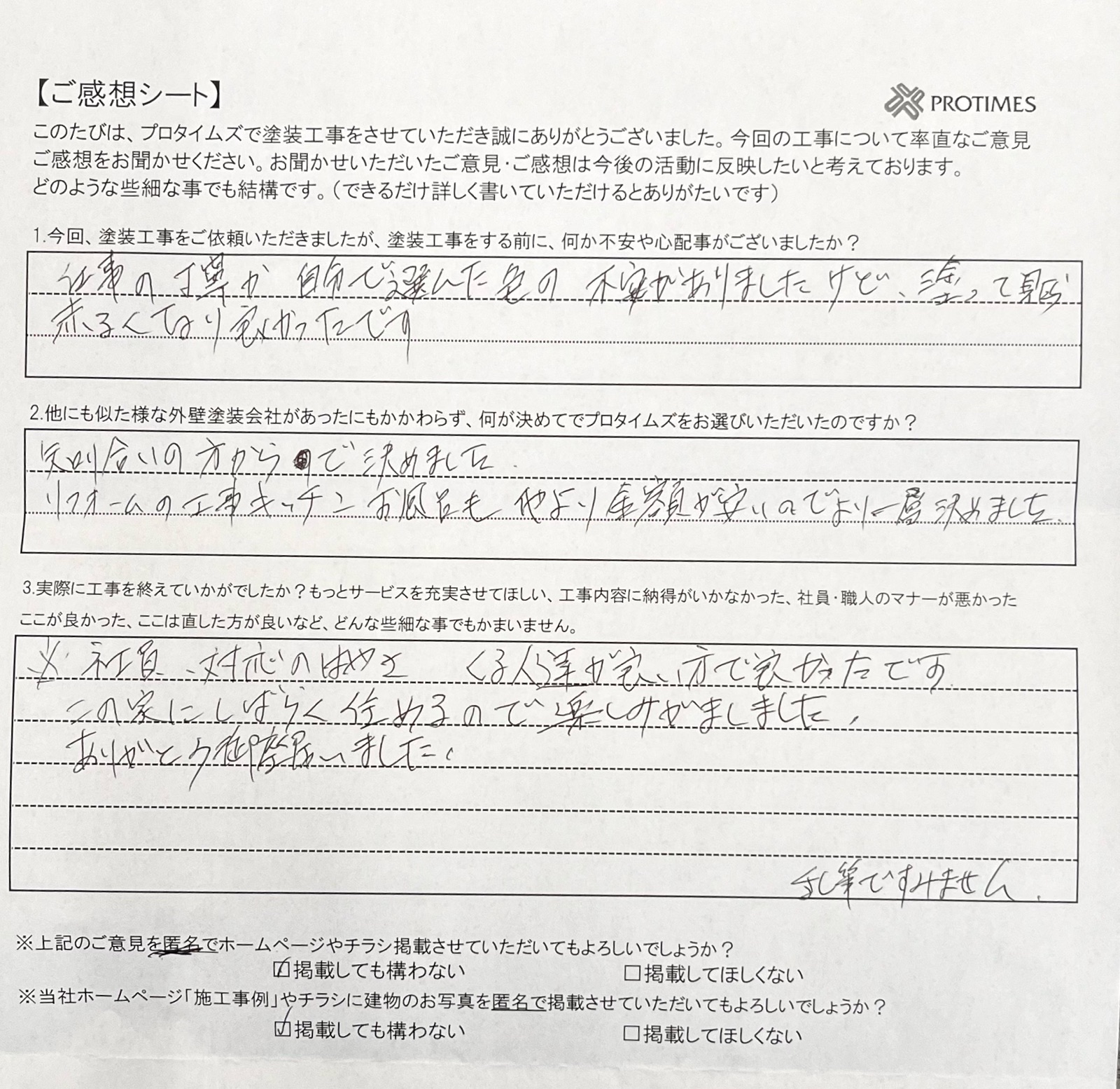 他にも似たような外壁塗装会社があったにもかかわらず、何が決め手でプロタイムズをお選びいただいたのですか?