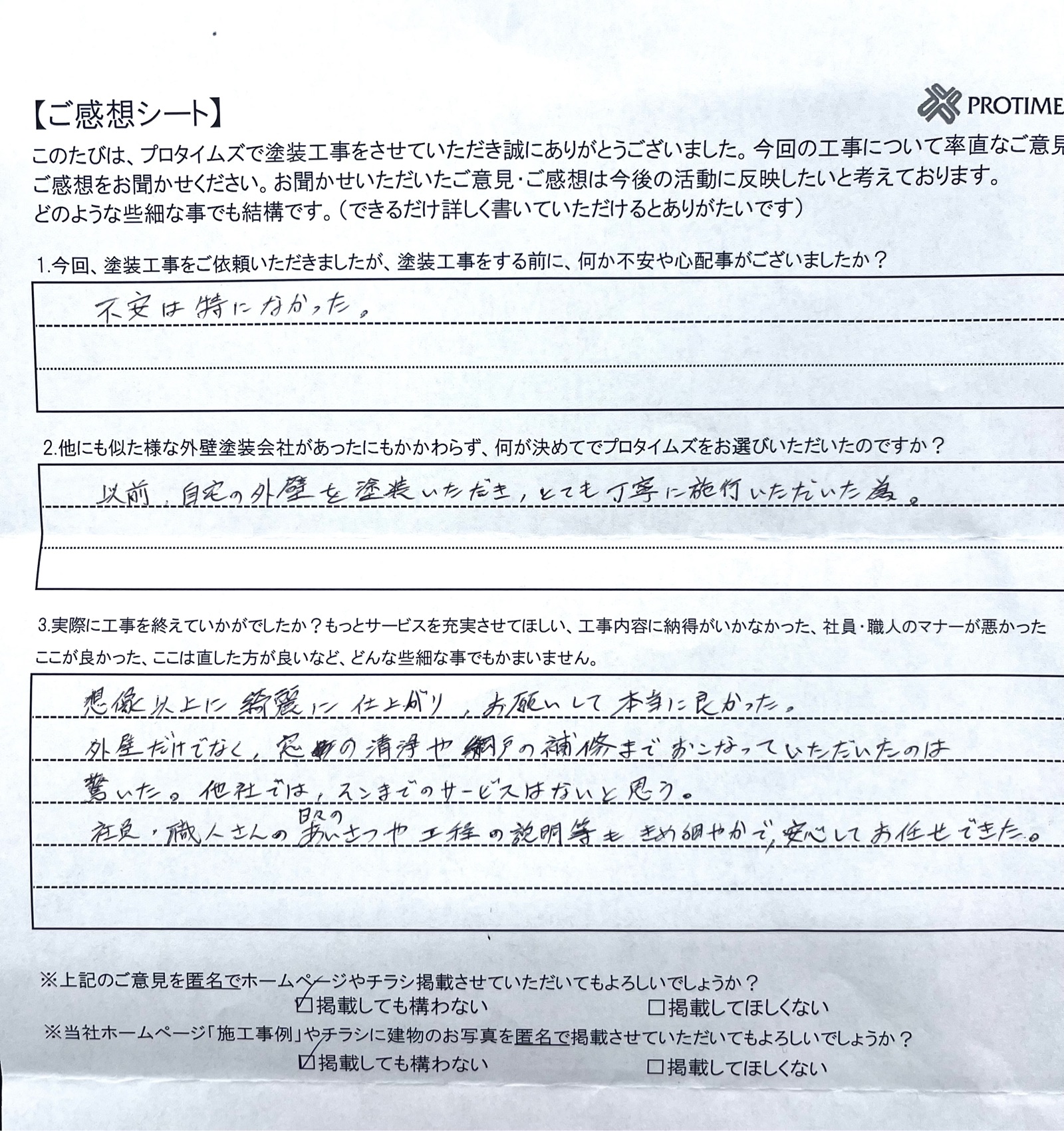他にも似たような外壁塗装会社があったにもかかわらず、何が決め手でプロタイムズをお選びいただいたのですか?