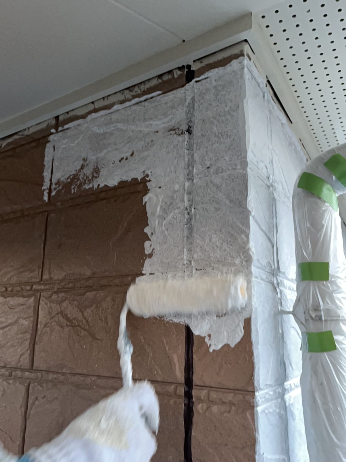 コーキング部は打ち替え塗装を行いました。塗料はアステックペイントの超低汚染遮熱プラチナリファイン2000MF-IRを使用。建物をなるべく長く持たせたい方には今一番人気の塗料です。