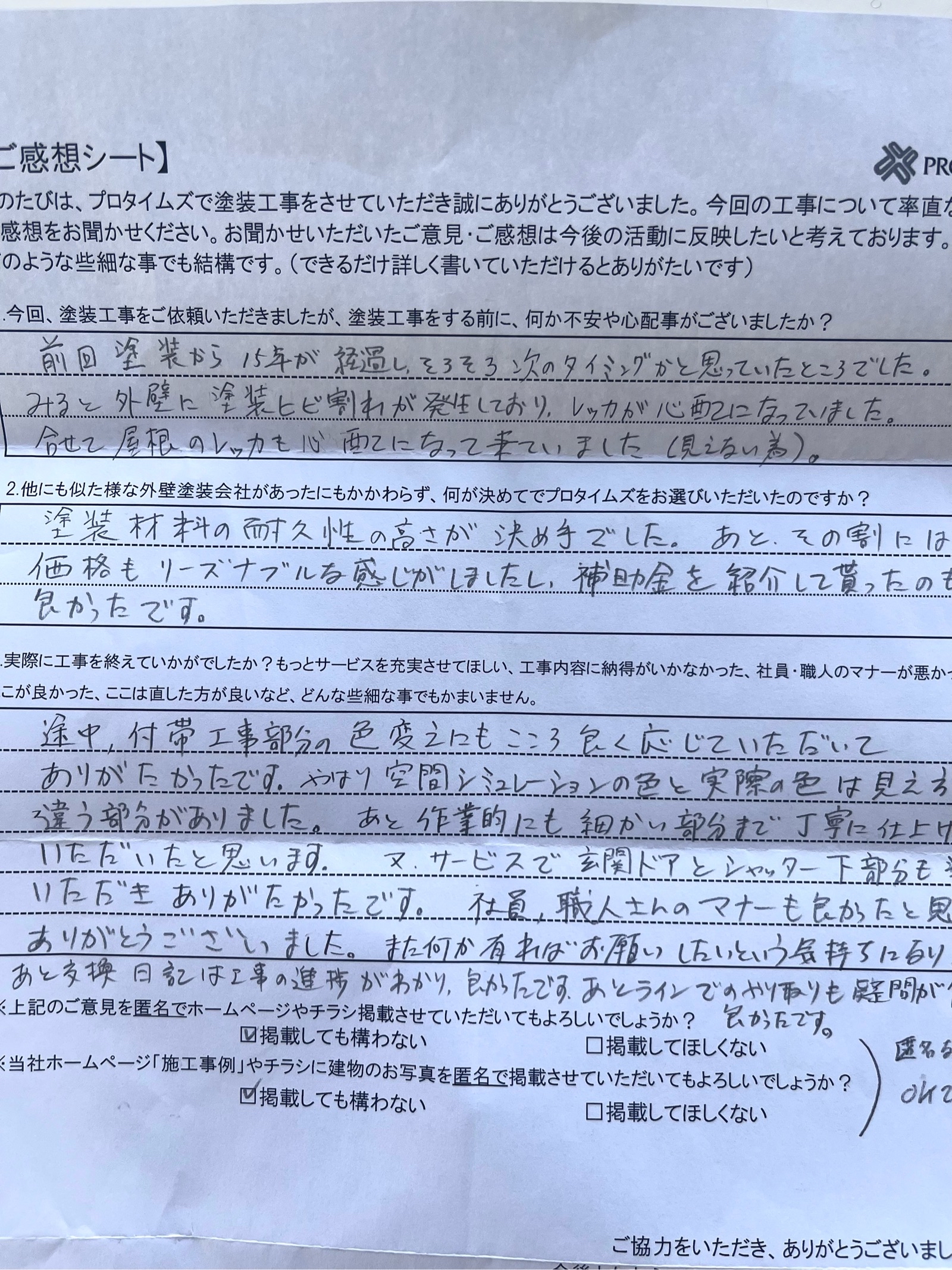 他にも似たような外壁塗装会社があったにもかかわらず、何が決め手でプロタイムズをお選びいただいたのですか?