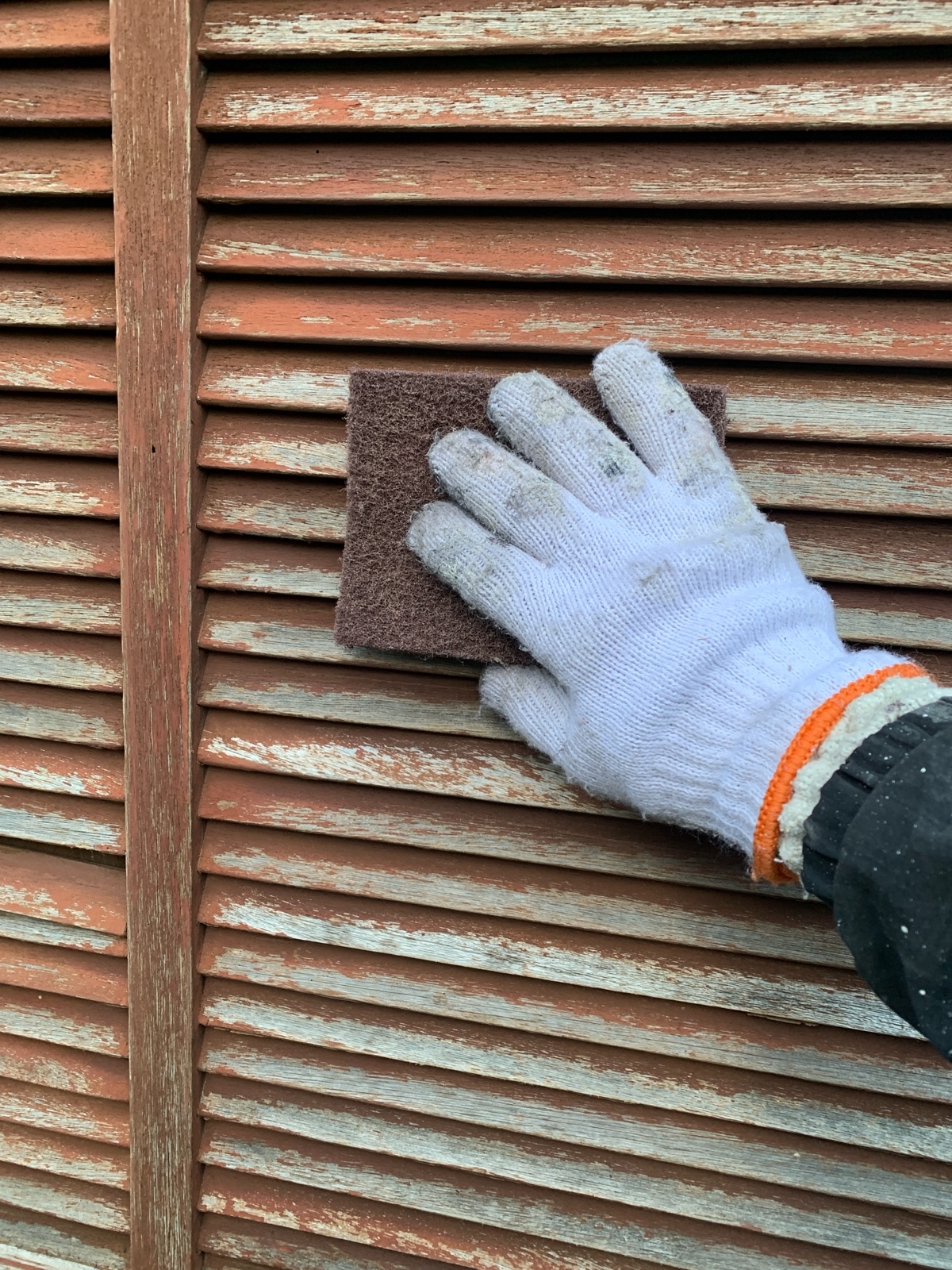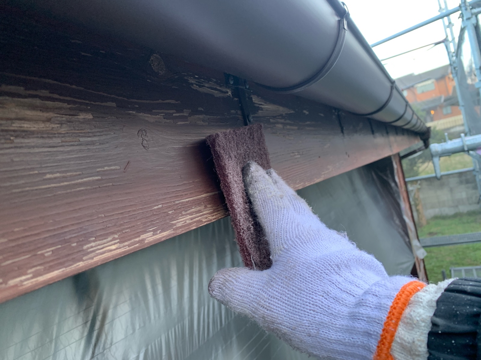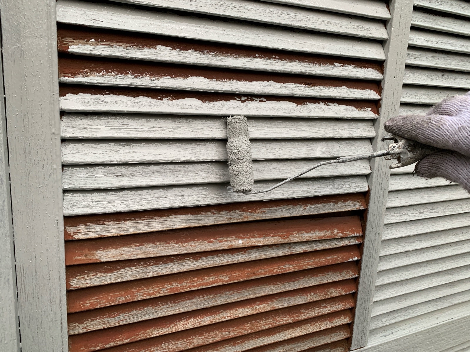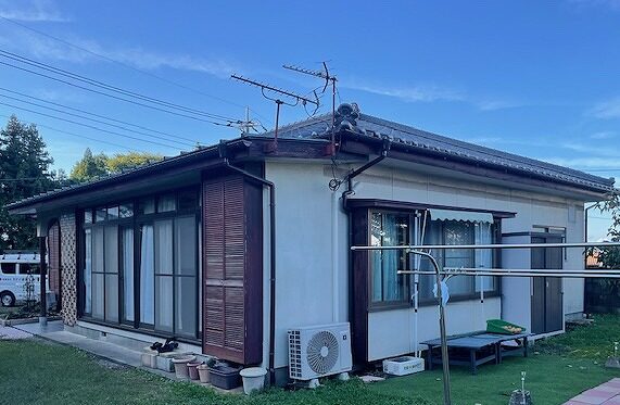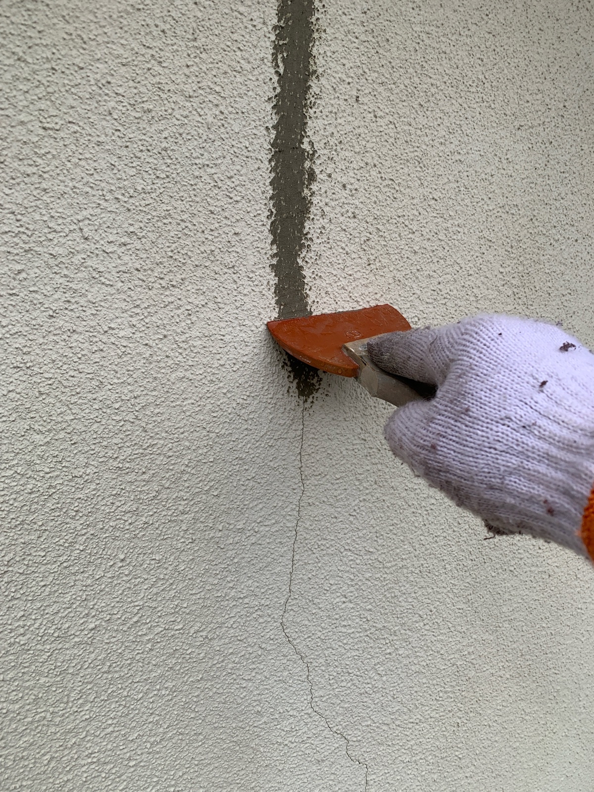 塗装歴のある住宅で屋根は和瓦、外壁はモルタル外壁です。外壁の一部、モルタル外壁ではよくあるひび割れが見られました。破風、戸袋などの木部はかなり劣化が激しく塗膜の機能をはたしていない状態。