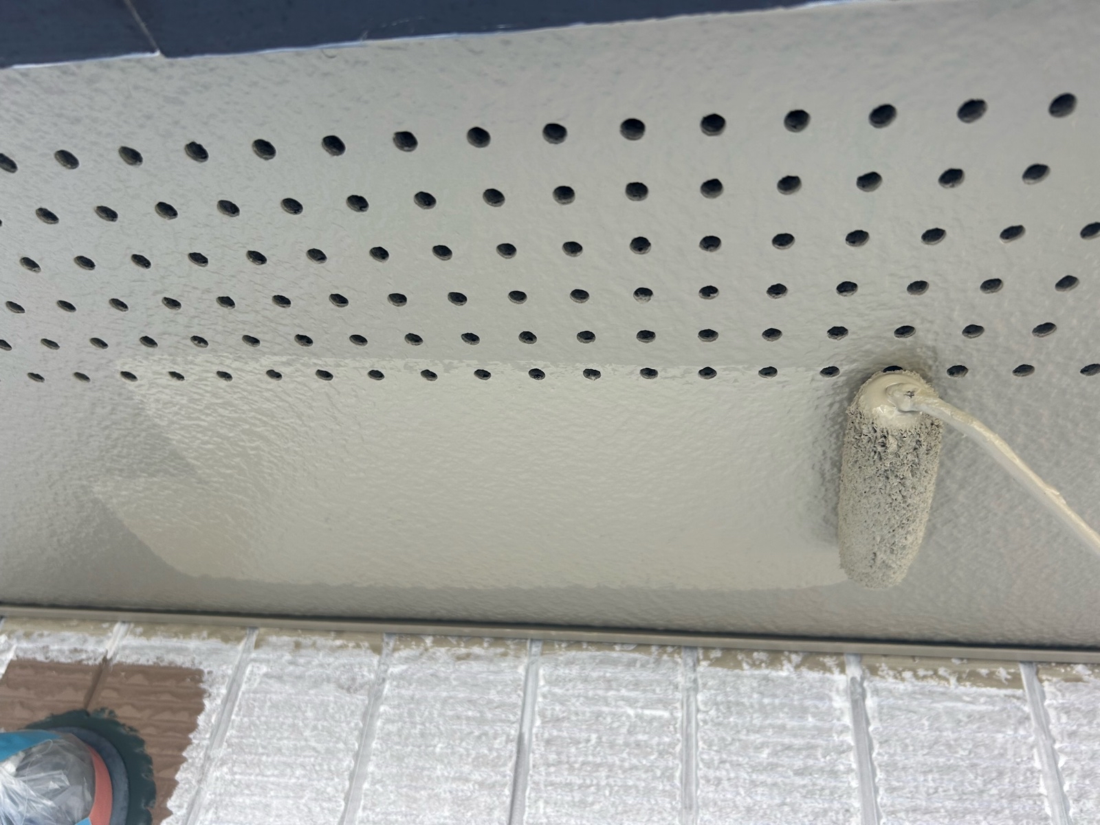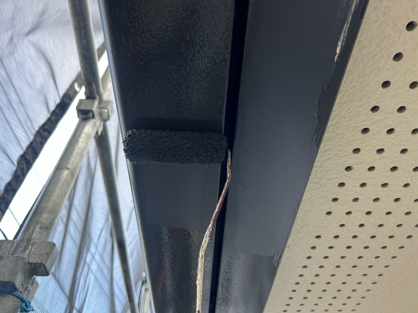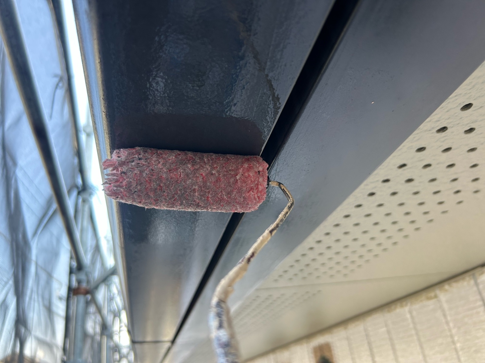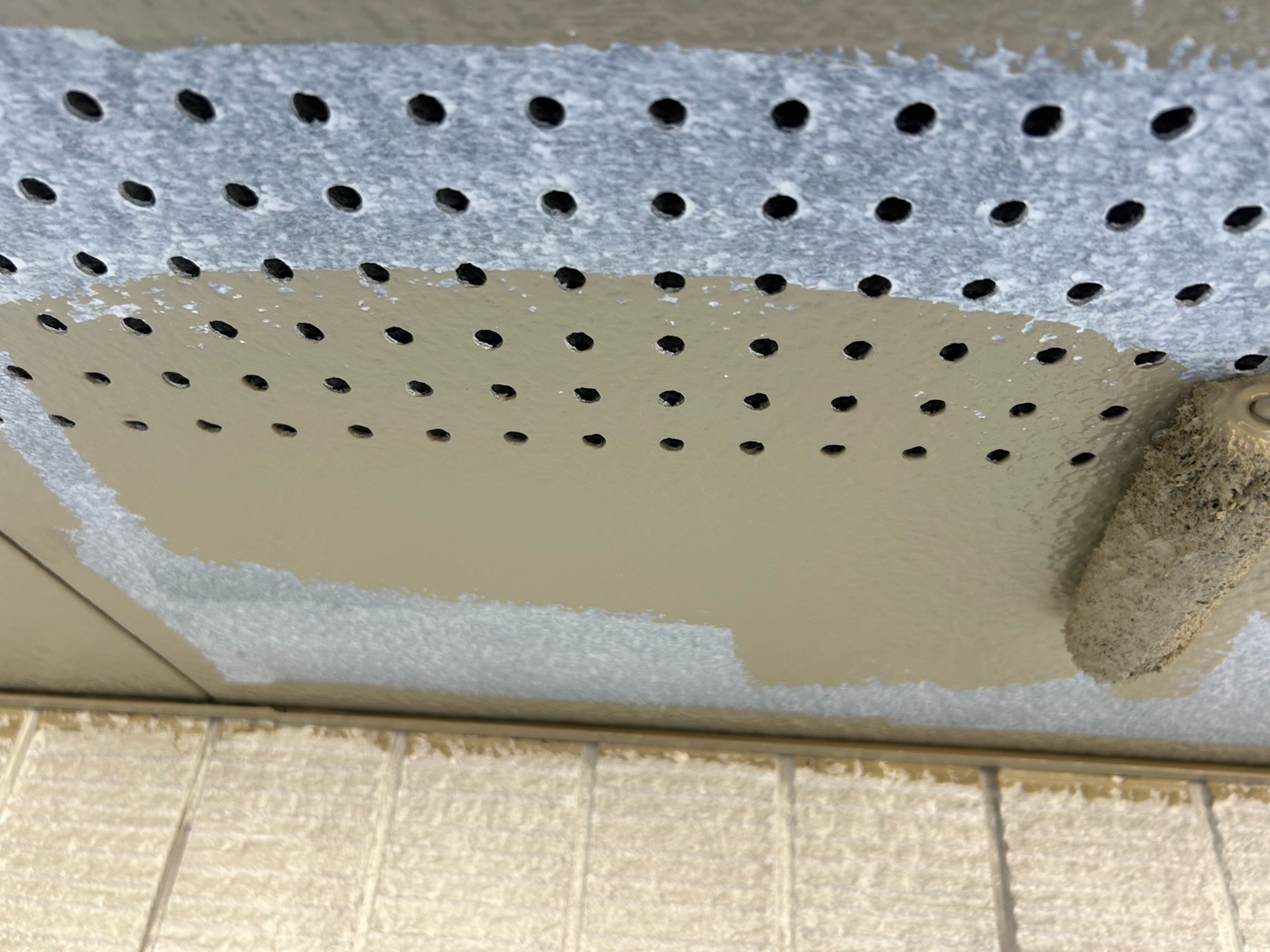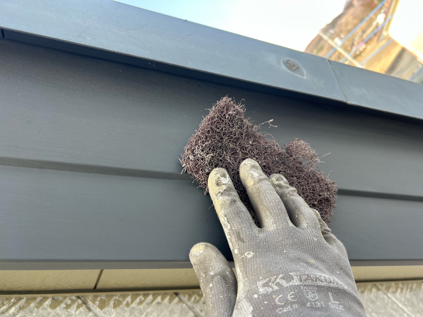 カラーは大判の色見本と合わせてご自身でシュミレーションしていただきました。一色で塗りつぶしましたが、幕板の色とサッシの同系色の差し色が建物全体のグリーン色をより綺麗に引き立てます。