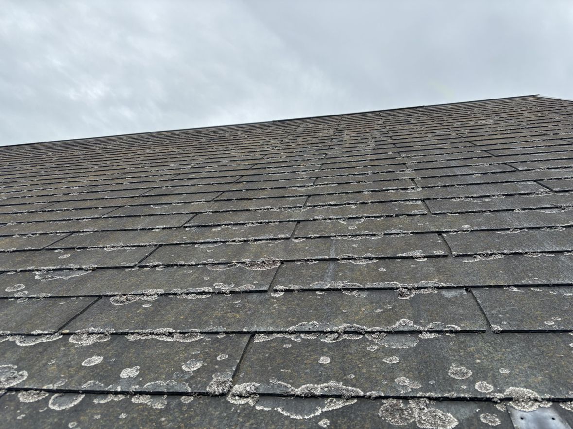 屋根はスレート瓦。経年劣化によりカビの繁殖、瓦の割れが多く見られ、外壁もサイディングの割れや、コーキングの割れ、チョーキングが見られました。特に屋根に関しては、早めにメンテナンスをした方が良い状況でした。