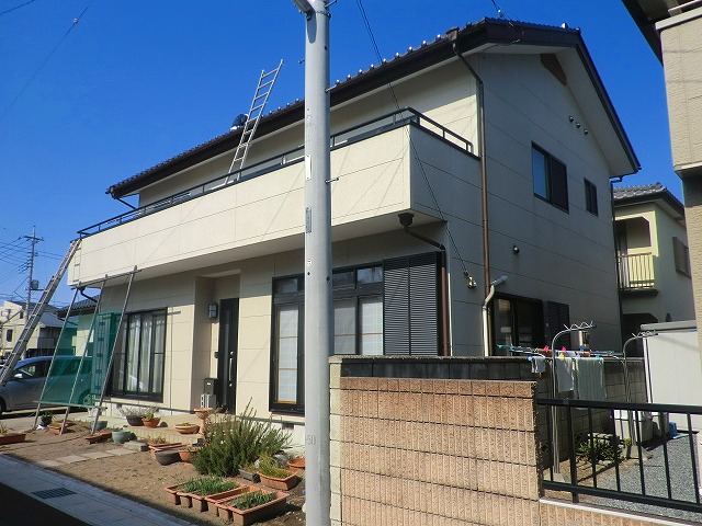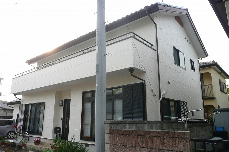 コーキング箇所に細かいクラックが多く発生していましたので増し打ちによるコーキング処理をしたのち塗装をしました。 遮熱性のあるホワイト系のお色選びで、遮熱塗料(EC2000DGIR㈱アステックペイント)を使用しました。 今年の遮熱効果が楽しみになりそうです。 S様はセミナーに参加して頂いたお客様です。 セミナーの時、ご自宅のメンテナンスに関してとても熱心にご質問されている姿が、とても印象的なご夫婦でした。 大変お世話になりました。