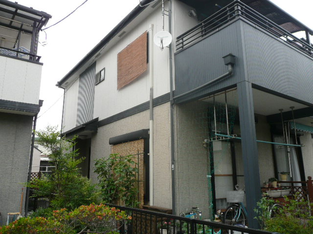 O様は「塗り替えセミナー」に参加して頂いたお客様です。 ご質問も多くしていただき会話が弾みました。 建物はやはりコーキングの劣化が激しく、サイディングも水を吹きかけると吸込んでしまい塗膜の機能を果たしていない状態でした。 スレート屋根はカビ・コケの発生、板金部の劣化・釘浮きなどが目立っていました。 コーキングは打ち替え、屋根には屋根材なのに保証年数10年、遮熱機能も兼ね備えた「無機ハイブリットコートJY-IR」をお選びいただきました。 もともと増設したベランダの色を生かし、ライトラテ・ホワイトリリィの2トーンをお選びいただきました。 とても明るく優しいO様ご夫婦にピッタリで爽やかな外観に仕上がりました。。