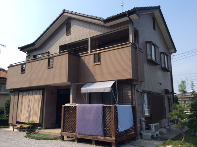 セメント瓦はコケの繁殖が激しく瓦の塗膜もかなり劣化してました。 入念に洗浄してから塗装を行いました。 材料はアステックペイントの無機ハイブリットコートJY-IR。 無機とは紫外線により分解されない結合を持つもので、劣化に強く硬い特徴があります。 耐久性がすぐれ、しかも遮熱機能を兼ね備えた塗料を使用しました。カラーはガーネット。 外壁はサイディングで、コーキング部の劣化、ひび割れ、チョーキング現象が見られました。 コーキング部は打ち替え、伸縮性のある塗膜が特徴のアステックペイントのEC-2000Fを使用。 メインのカラーはオレンジホワイト。こちらのお宅では、ベランダ外壁をレンガ調にデザイン塗装し、まるでベランダを張替たような仕上がりになり、施工前とは全くイメージが変わり新築のようになりました。 そしてベランダ内部をオールドローズに塗り分けました。花壇に咲いたお花のように、穏やかで温かく、明るい外観になりました。