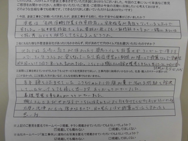 Q:他にも似たような業者があったにもかかわらず、何が決め手でプロタイムズをお選びいただいたのですか?