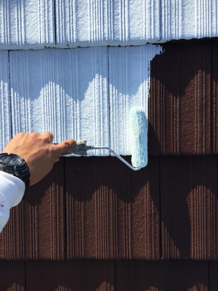 外壁のコーキングは打替え、塗装を行いました。屋根は洗浄を行った後、研磨作業をしてから塗装しました。