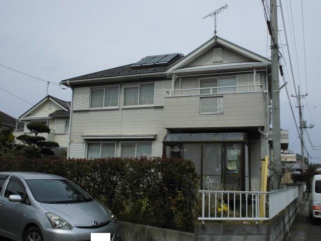 外壁はコーキングを打替え、釘浮き、ひび割れを是正後塗装しました。雨樋は交換、屋根に乗っていたソーラーパネルも撤去しました。