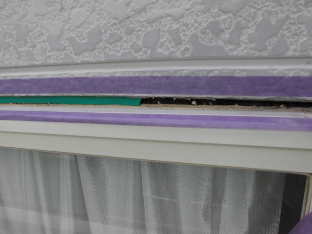 外壁は経年劣化により、ところどころにコーキングの割れ、剥がれが見られました。コーキングは打ち替え塗装しました。