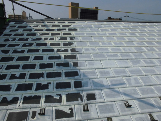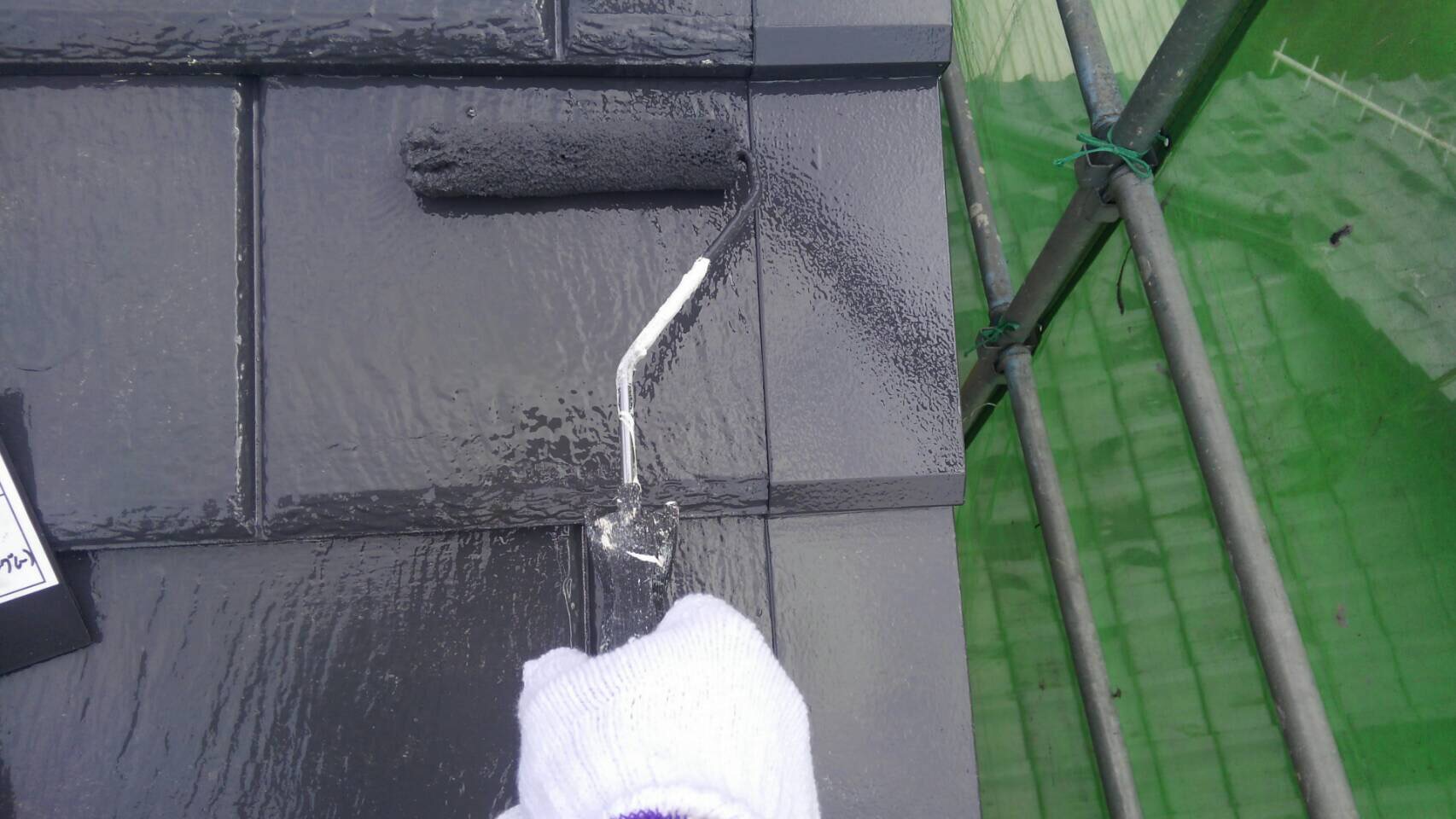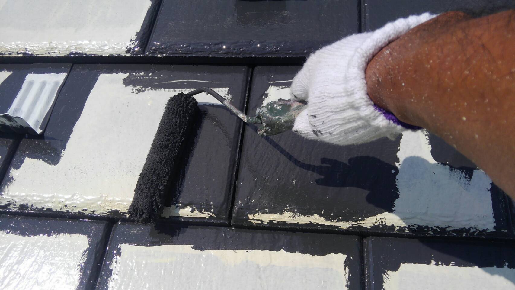 屋根は下塗り材を1回目塗布し、経年劣化により塗料を吸いこんでしまう状態でしたので2回目を塗布しました。