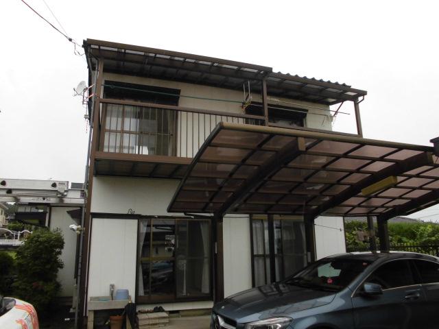 全体的に色褪せや、チョーキング現象が見られ、特に木部については、塗膜剥離が目立ちました。 細かい補修箇所は下地処理をした後塗装しました。塗料は人気のセミフロンシリーズを使用。 カラーは元のホワイト系からイメージチェンジ。 とても明るい黄みの強いクリーム系の色で仕上げました。 物置も同じ塗料で塗装し、統一感のある外観に仕上がりました。 遮熱機能を兼ね備えていますので夏場の省エネが期待できます。
