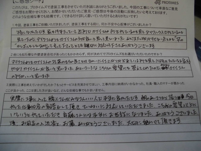 Q:他にも似たような業者があったにもかかわらず、何が決め手でプロタイムズをお選びいただいたのですか?