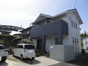 外壁はクラックが出始めていましたので、今後の事も踏まえ、伸縮性のあるアステック塗料で塗装しました。色も、別宅の平屋と合わせました。