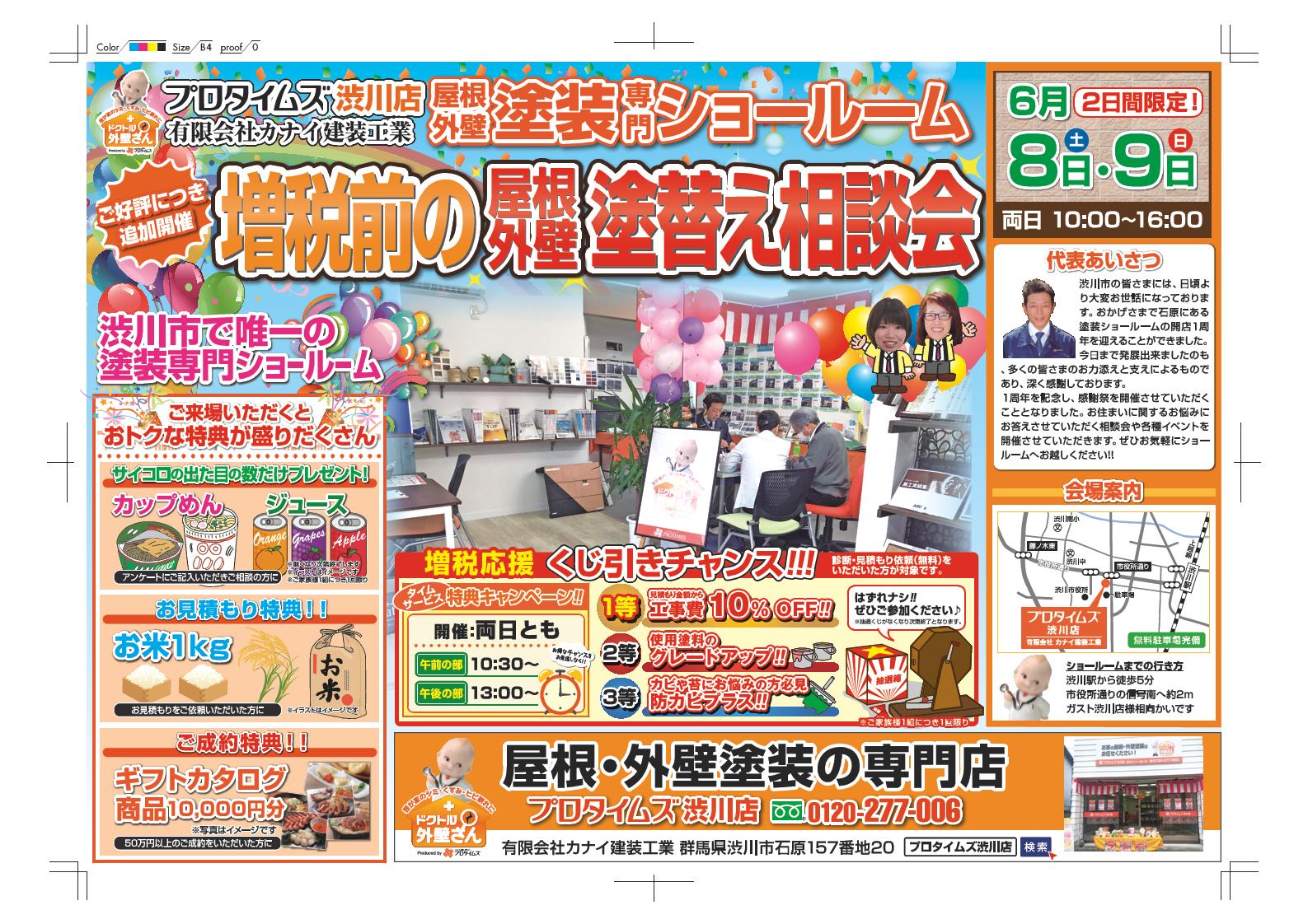 ご好評につき!イベント追加開催!「増税前の屋根外壁塗替え相談会」をプロタイムズ渋川店(渋川市石原157-20)にて開催します!