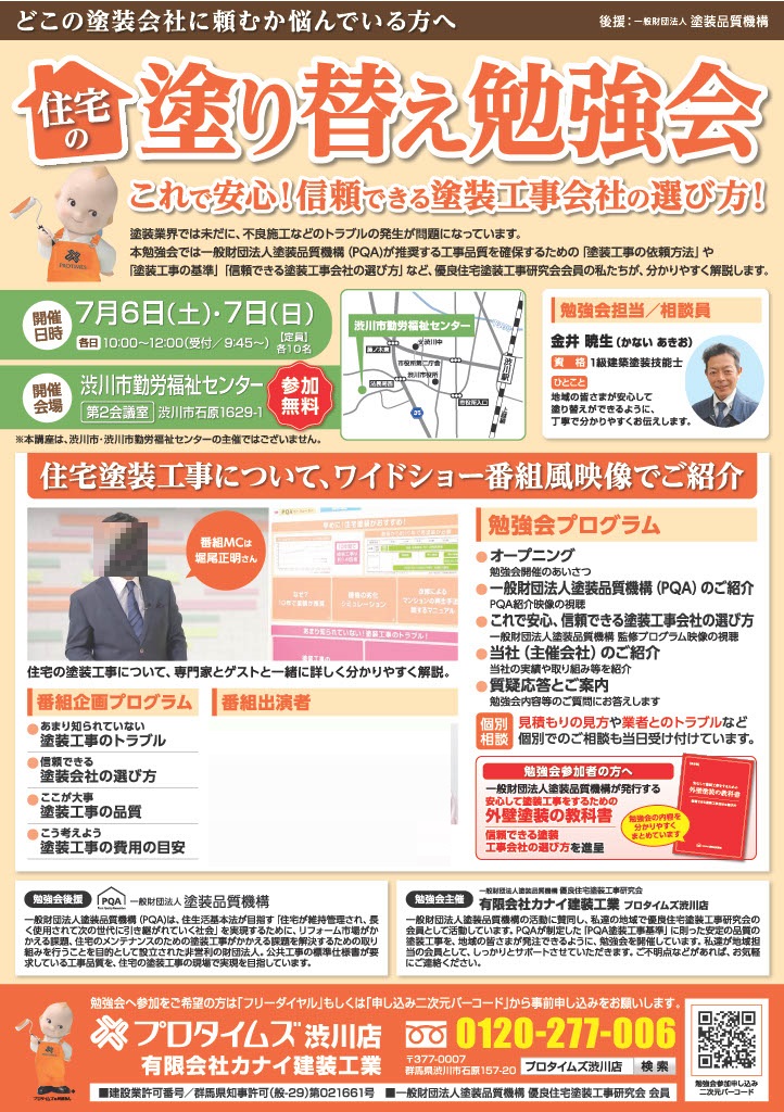 7月6日(土)7日(日)塗り替え勉強会開催!