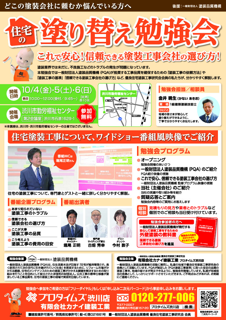- 10月4日、5日、6日「屋根外壁塗替え勉強会」開催!!