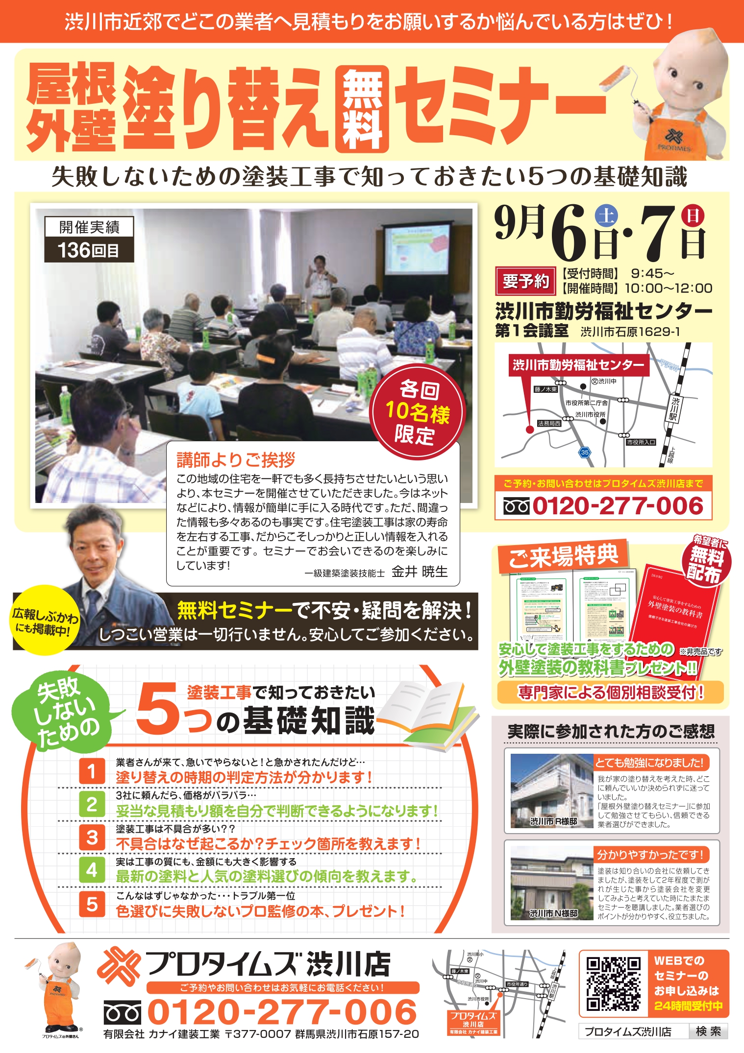 9/6㊏「屋根外壁塗り替えセミナー」のお申し込みはこちら!!